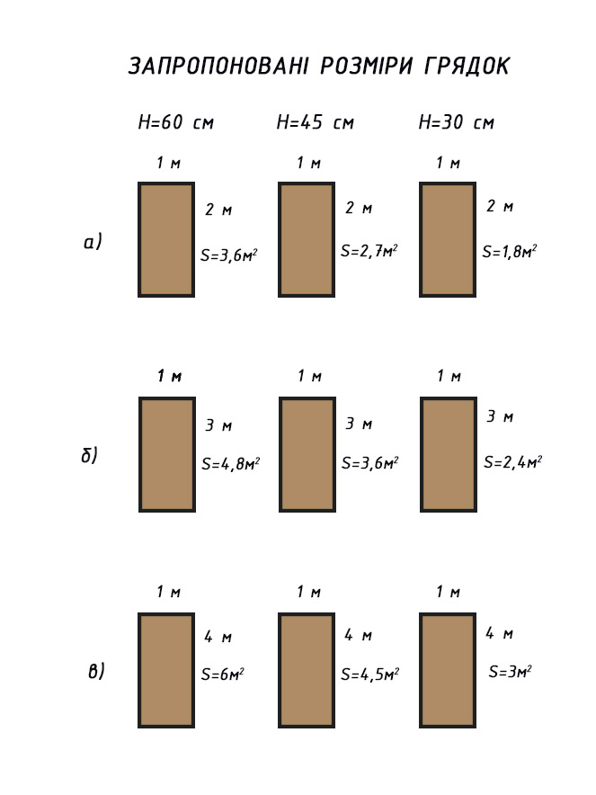 Ціна грядки по запропонованих розмірах 3000 грн/м2